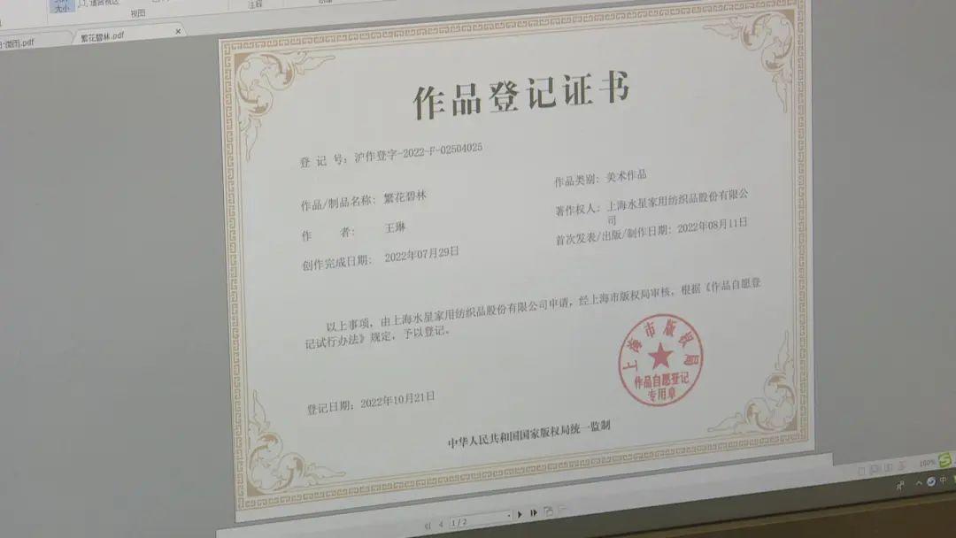 “有这样一个平台,就减少了我们工作量。”水星家纺研发中心研发总监张泽介绍道,由于每申请一款版权都需要大量的资料输出,此前一个版权申请需要半天的时间,而现在半天的时间足够申请10款。
