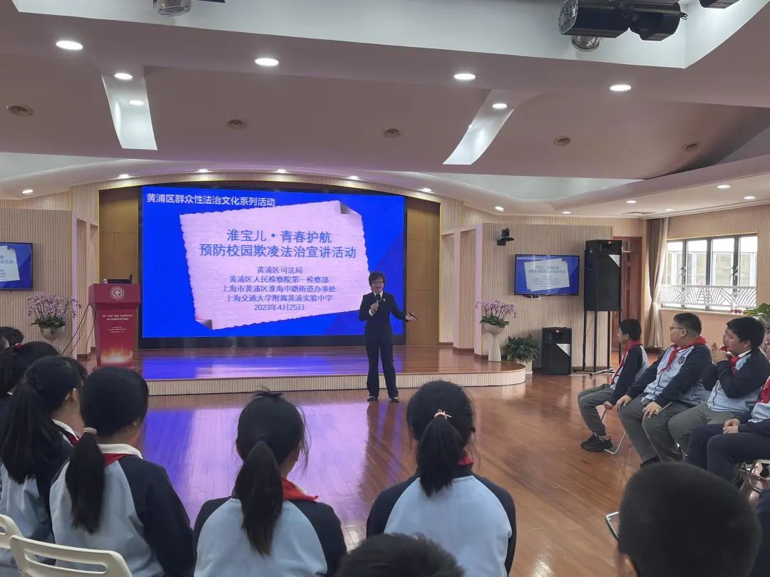 今年4月,上海市教委、市检察院联合发布了2.0版本的《中小学生欺凌防治指导手册》。为进一步加强校园法治建设,构建和谐文明的校园环境,帮助广大青少年树立正确的人生观、价值观,4月25日上午,淮海中路司法所、淮海中路街道未成年人保护工作站与上海交通大学附属黄浦实验中学联合举行了“淮宝儿·青春护航”预防校园欺凌法治宣讲活动。
