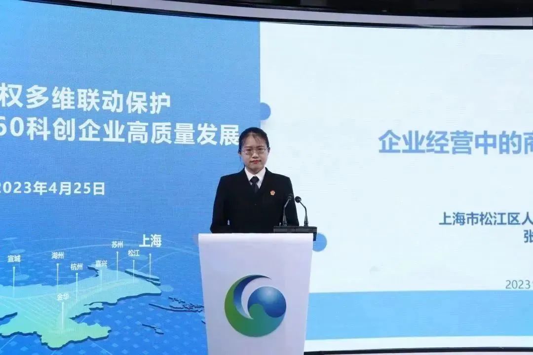 “4·26世界知识产权日”前夕,为提升辖区企业知识产权应用能力和自主创新能力,进一步优化知识产权创造、运用,营造良好的营商环境,上海市检察机关服务创新知识产权巡回课堂走入松江长三角G60科创云廊,松江区人民检察院联合区人民法院、区知识产权局,以“知识产权多维度保护·护航长三角G60科创企业高质量发展”为主题开展知识产权保护巡讲活动。