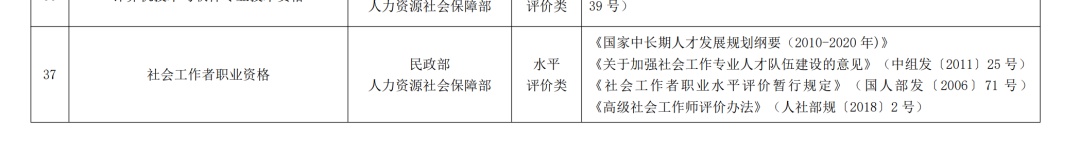 2021年版《国家职业资格目录》对“社工证”的介绍