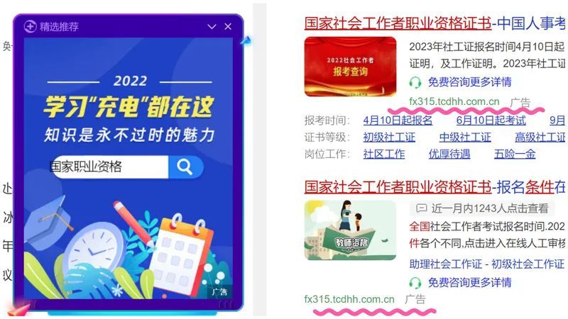 搜索“社工证”,排名靠前的全是“广告”,却自称“考试网”“统一入口”