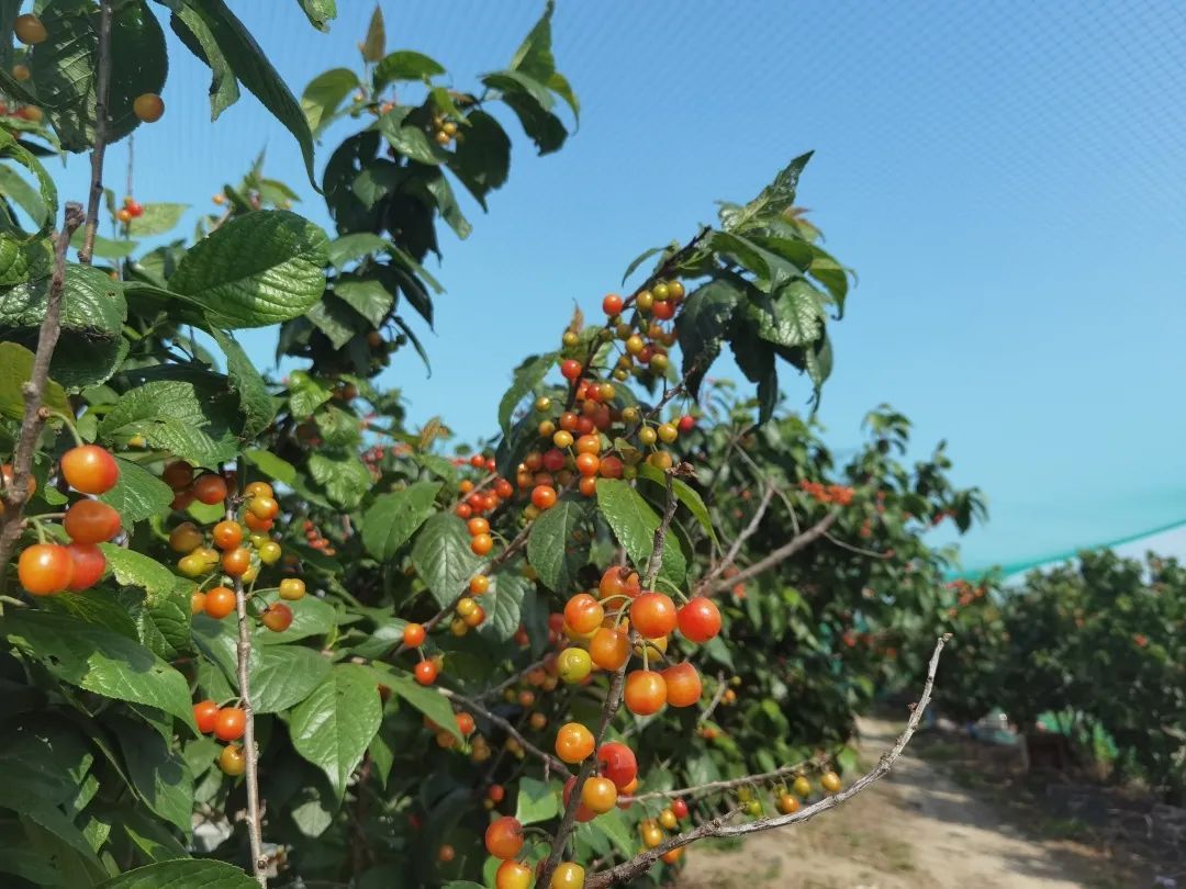 马上就要五一小长假了,避开人山人海,来重固镇章堰村万亩春生态农业园里,尝新鲜可口小樱桃,享乡村田园好风光。樱桃树叶在风中摇曳,鲜嫩圆润的小樱桃像调皮的娃娃露出小脑袋挂满枝头,在阳光下晶莹剔透。据农业园负责人介绍,樱桃已经进入成熟季且采摘周期较短,从现在起至5月8日左右是最佳采摘期。
