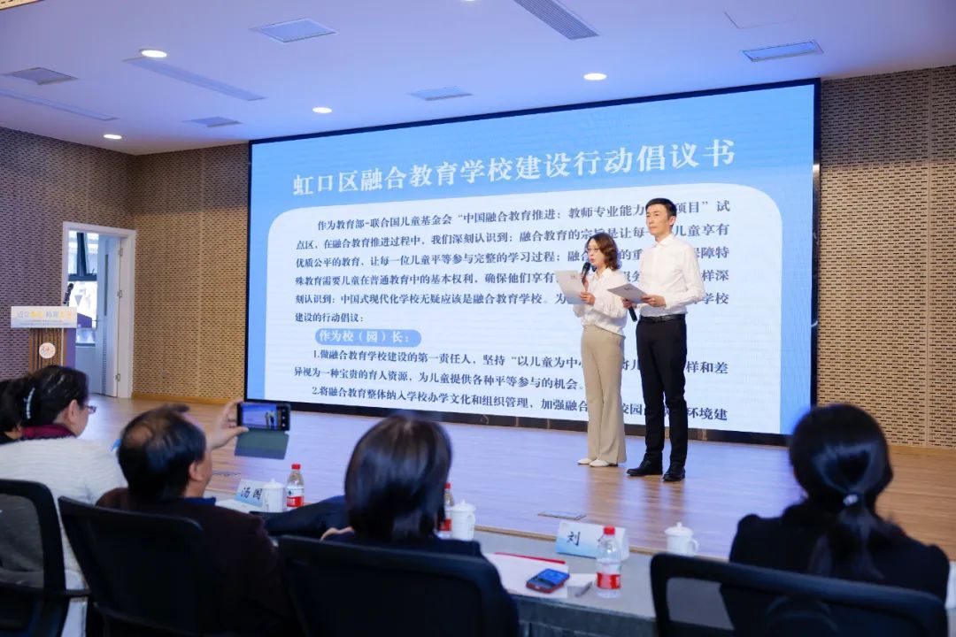 推进会上,虹口区发布了《虹口区融合教育学校建设行动倡议书》,从学校管理者和教师两个层面,提出了“积极建设融合教育学校”的倡议,凝聚了“人人都是融合教育工作者”的共识,描绘了“让所有儿童能在儿童友好环境中享有优质、包容教育”的愿景。