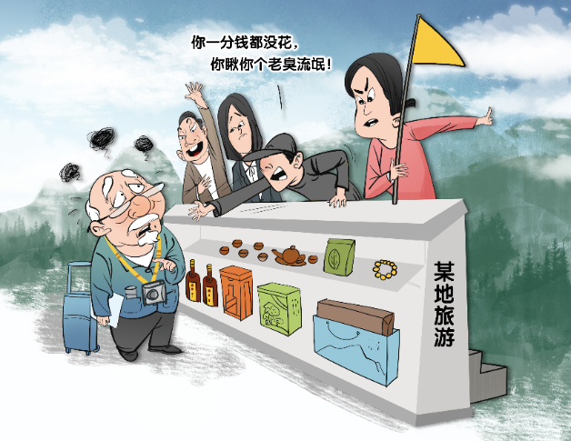 游客报名参加旅行社组织的旅游,目的是去游玩,并非去购物。然而,一些旅行社为了招徕生意,以低价团、特价团,甚至“零价团”为幌子,引诱游客报名。游客一旦中招,旅游途中,他们就软磨硬泡,要求游客大量购物,如果游客不从,还以恐吓、威胁手段,强迫游客购物。这种欺诈、引诱、威逼、恐吓的“下三滥”手段,败坏了游客的出游心情,影响了游客的旅游体验,破坏了当地旅游业的形象,有关部门必须坚决整治,严厉打击。