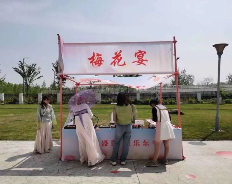活动现场还举行了丰富的文化体验活动。药茶品鉴、梅花糕点制作、米糕品尝、手工盘扣制作、中药香皂制作等具有东平特色的活动吸引众多市民游客前来体验。活动现场还不时看到身着汉服的市民穿梭,别有一番趣味。