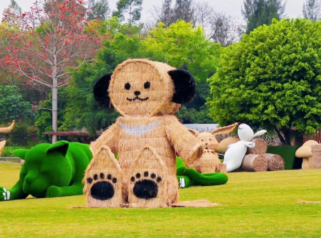 硕大的龙猫、巨型白兔正沐浴在暖阳中