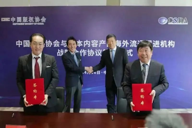 4月26日是第23个世界知识产权日。当日上午,中国版权协会与日本内容产品海外流通促进机构(以下简称“CODA”)在北京签署战略合作协议。双方本着平等互利、优势互补、信息共享、共同发展的原则,将共同促进中日著作权领域的双向交流,推动与版权相关产业的健康发展,增进行业自律,保护权利人利益。中国版权协会理事长阎晓宏,日本内容产品海外流通促进机构理事后藤健郎等出席协议签字仪式。