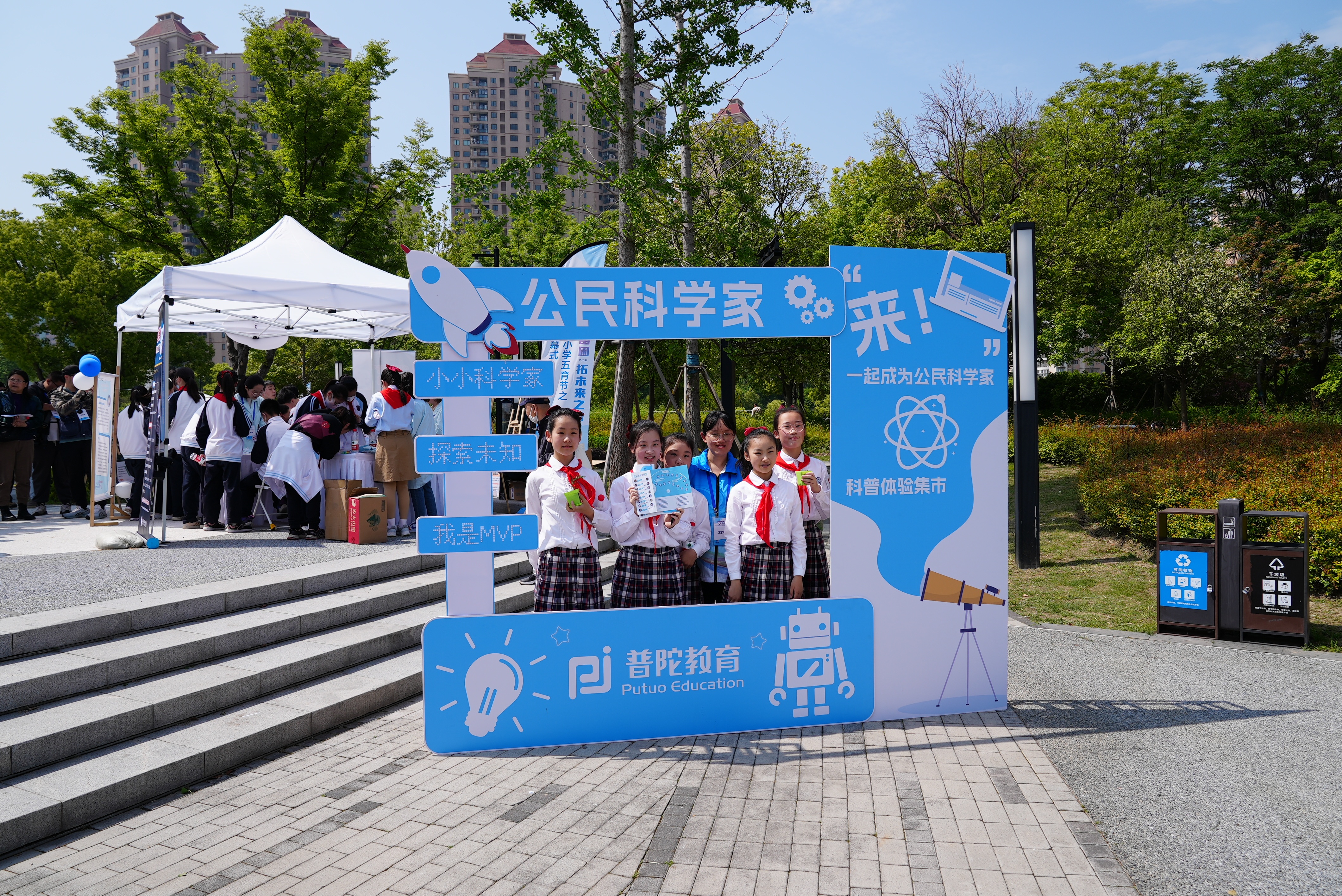 “来!一起成为‘公民科学家’”科普体验集市作为首场专场活动在青少年教育活动中心长风校区以及长风滨河2号绿地同步开放。科技教育特色巡展、水科技趣味实验探究、人工智能创新应用现场体验、优质科创课程资源展示与互动体验以及青少年模型锦标赛等特色主题活动吸引上千名普陀学子驻足,“公民科学家”们徜徉在风光绮丽的半马苏河之畔,沉浸在科技创新的海洋。