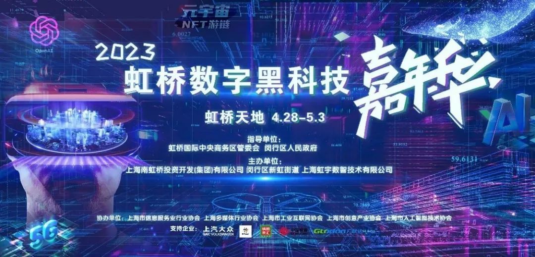 4月28日,首届虹桥数字黑科技嘉年华在虹桥国际中央商务区核心商圈虹桥天地举办。该活动作为2023年上海“五五购物节”亮点活动之一,汇聚了AI人工智能、区块链、云计算、5G等数字科技,融入文旅、娱乐、教育和生活等应用场景,创新探索“五五购物节”信息消费数字生活。嘉年华吸引众多数字头部企业和科创新锐汇聚“大虹桥”,进一步提升“大虹桥”科创浓度。