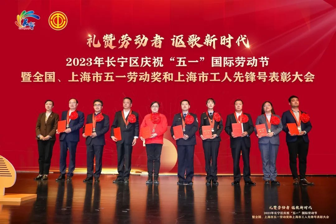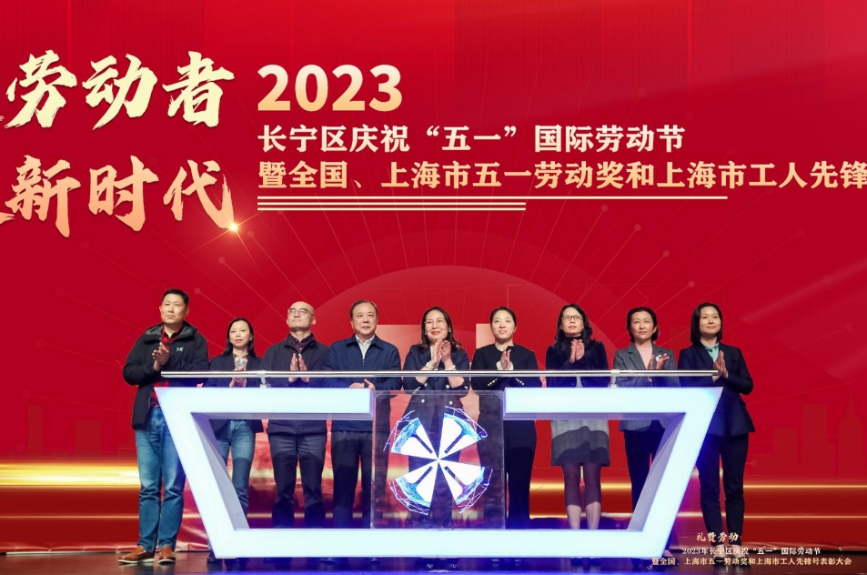 为弘扬劳模精神、劳动精神和工匠精神,表彰先进典型,“礼赞劳动者 讴歌新时代”2023年长宁区庆祝“五一”国际劳动节暨全国、上海市五一劳动奖和上海市工人先锋号表彰大会在虹桥艺术中心举行。
