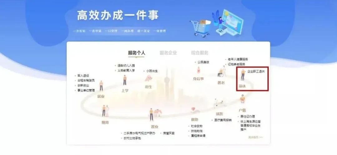 “退休一件事”由基本养老金、退休医保待遇、年老退休一次性计划生育奖励费、住房公积金、退休住院保障计划五项事项组成。只需要通过“一网通办”的“退休一件事”栏目,一口申请即可,各关联事项的办理进度和结果都可以通过“一网通办”动态查询。