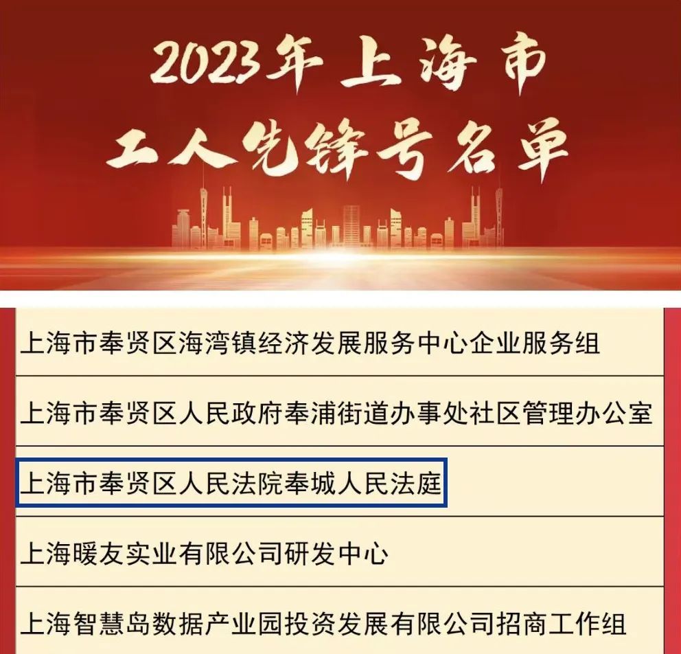 近日,2023年上海市五一劳动奖表彰大会举行,会上表彰了180个上海市五一劳动奖状、493个上海市五一劳动奖章、481个上海市工人先锋号。上海1个法院、1个人民法庭名列其中。