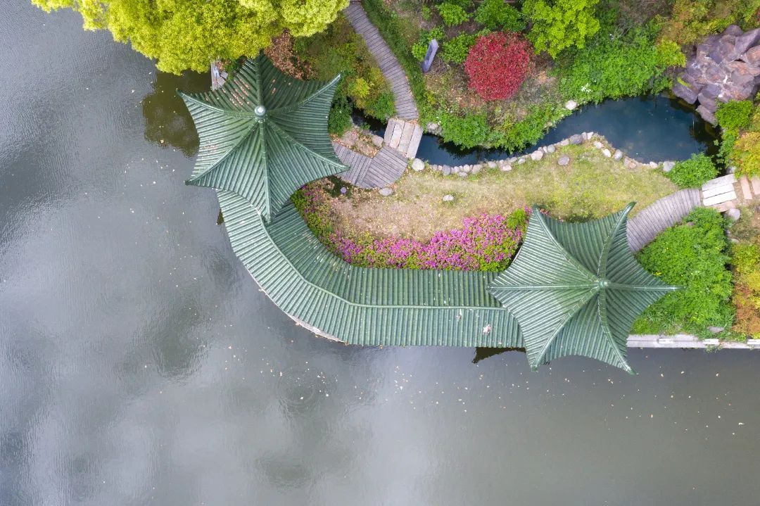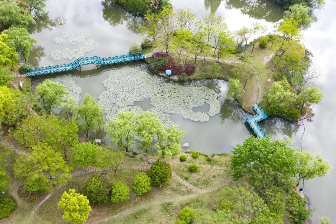 沿着石阶小径蜿蜒而上,或凭栏眺望、或登桥赏景,那水中的睡莲、空中的白鹭、摇曳的树影勾勒出一幅恬静美好的郊野画面。