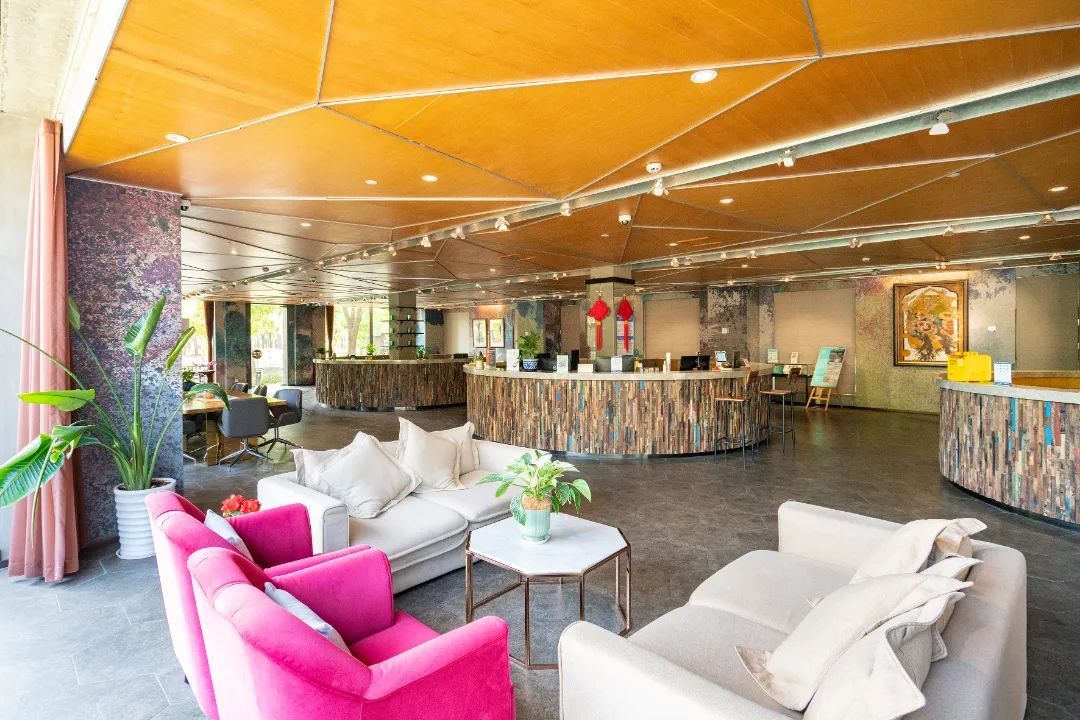 艺外萄源设计师民宿是一家艺术酒店,由彩色铅笔厂的老厂房改造而成,设计师以此为灵感,将彩铅元素融入到室内设计中。