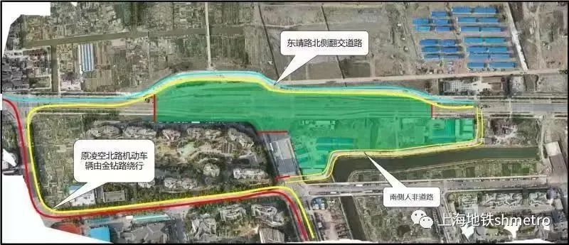 近日,崇明线107标凌空北路站道路翻交也顺利完成,实现了车站围蔽,标志着项目进入实质性施工阶段。