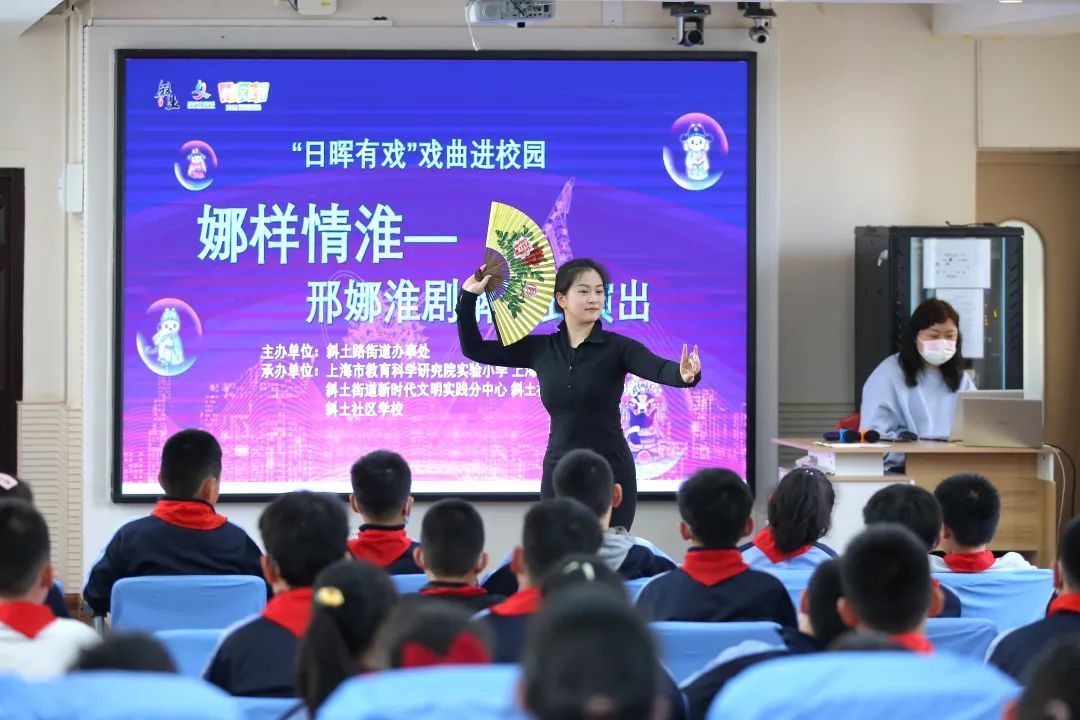 “日晖有戏”又来到校园啦!上海市教育科学研究院实验小学的校园艺术节举行期间,“日晖有戏”邀请上海淮剧团的优秀青年戏曲演员们为孩子们带来淮剧解读式演出。通过讲解、演绎及示范教学等学生们喜闻乐见的方式,携手萌娃们“解锁”戏曲及淮剧中的许多趣味知识。