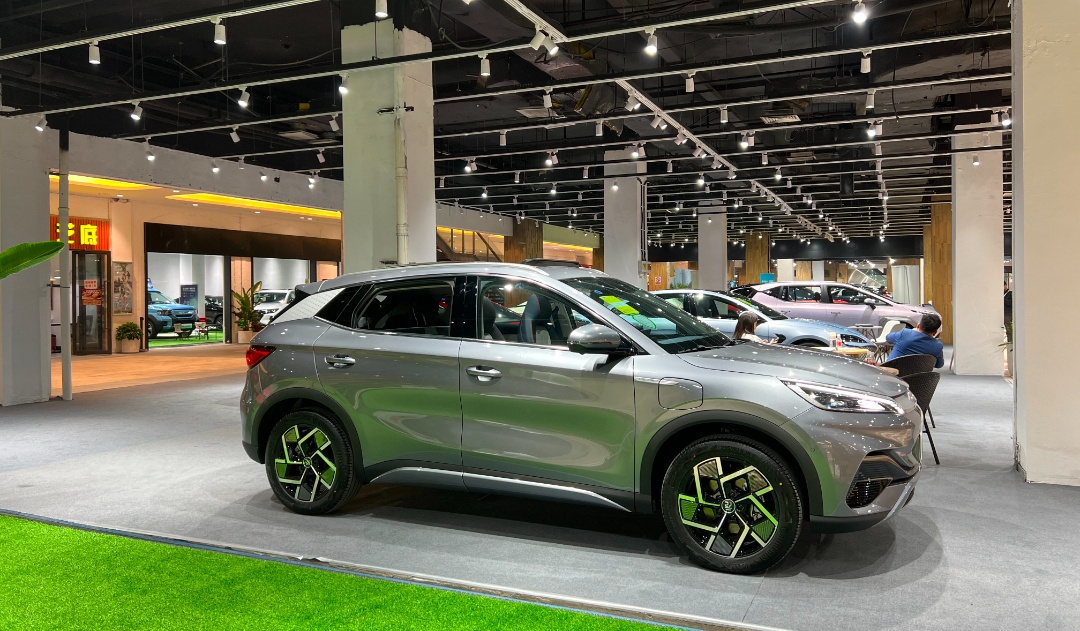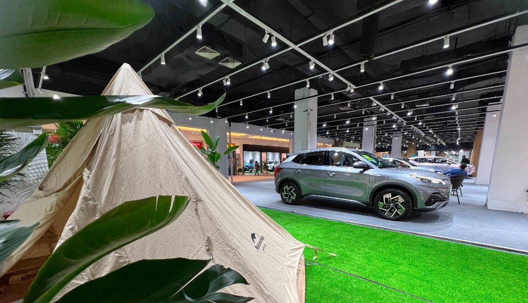 在宝山红太阳商业广场,超2万平方米的展示区里,比亚迪、上汽奥迪、零跑、岚图、广汽、Smart等国内外20多家一线新能源汽车新势力汇聚一堂,让人眼前一亮。