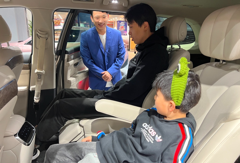 市民可以货比三家,挑选心仪的新能源汽车。上午,朱先生带着孩子体验了好几个品牌的新能源车,为接下来的购车做好功课:“选择性很多,不用到处跑了,一个地方就可以把各类新能源车型都体验一遍。”