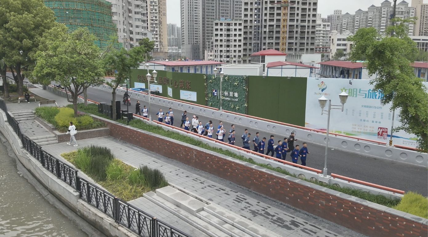 上海市消防救援总队跑团精英跑者开展“火焰蓝健身跑”,从市消防救援总队出发到达静安区消防救援支队恒丰消防救援站,随后带领体验者跑友,开展苏州河边绿道“火焰蓝欢乐跑”。