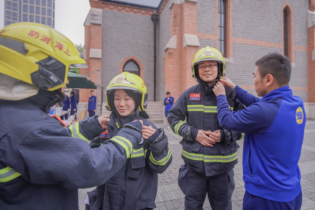 通过社会招募的体验者在恒丰消防救援站集合,并参与了消防体验活动,并在消防员的带领下进行了特色热身活动,随后两支队伍开展3公里“火焰蓝欢乐跑”,通过参与活动,传递“消防安全伴你行”的理念。