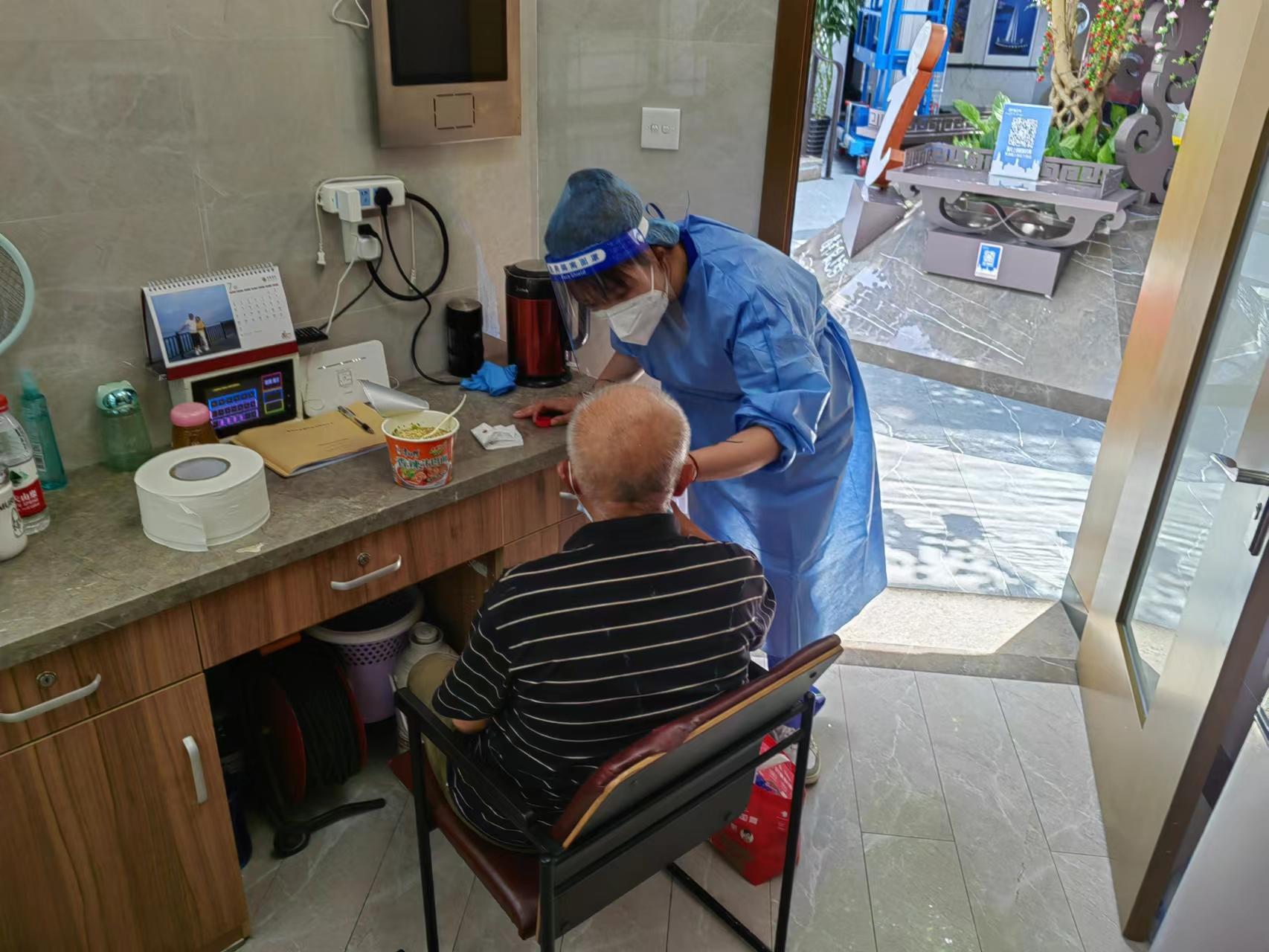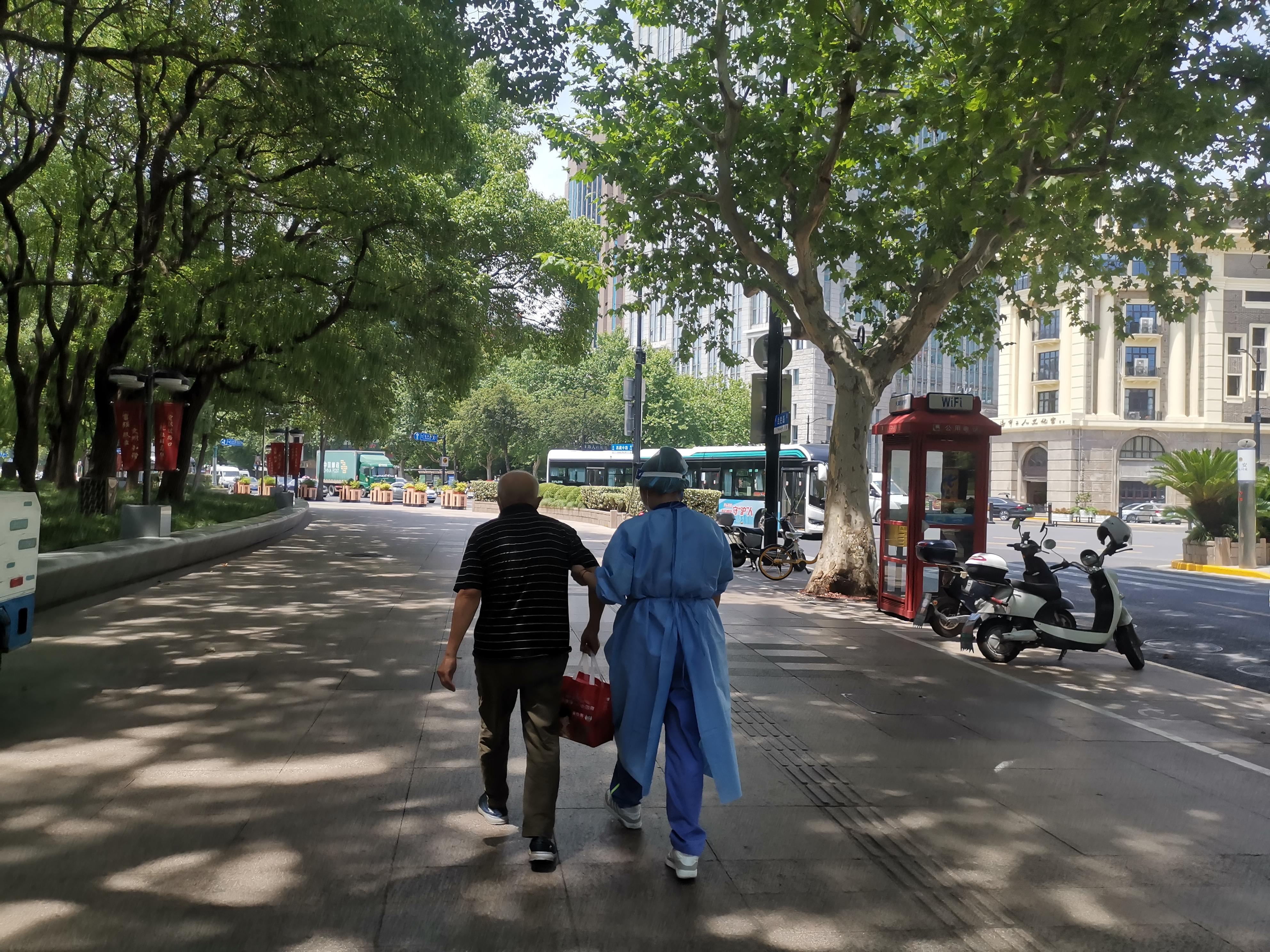 “我们上前询问老人是否需要帮助时,发现他已经脸色苍白,全身无力,我们判断老人可能是中暑了。”回忆起当时的紧急情况,杨默默依然印象深刻,“那天的气象预报说是有37度,实际人体感受到的温度还要更高,非常难挨。”
