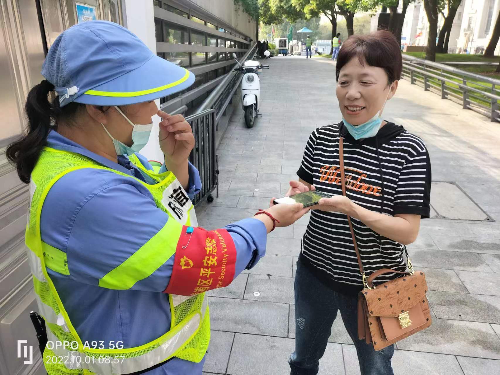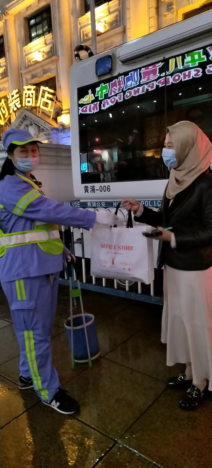 10月1日下午,广东路保洁班清道员工陈良翠在外滩滨水区支援保洁时,发现一名女子突然脱去衣物赤露上身,在观景平台上散发传单。陈良翠见状后,马上将手边的两个黑色大塑料袋帮她遮挡身体,并协助赶来的民警对这名女性进行控制。事后,外滩监控室公安领导亲自对陈良翠共同维护社会良好风气的行为表示感谢和赞扬。