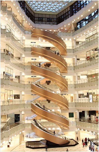 2015年,新世界大丸百货安装了12台螺旋型自动扶梯,一度成为了网红打卡地。