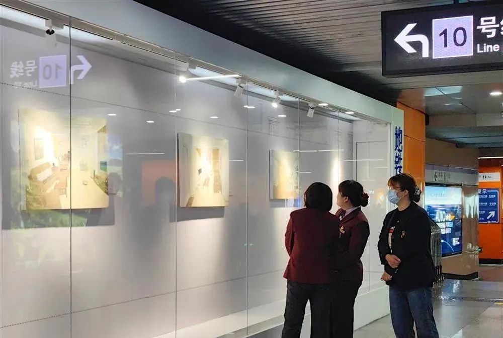 本次来到地铁南京东路站2号线、10号线换乘区域文化长廊展出的11幅作品皆为艺术家原作。将美术馆搬进地铁中,为市民提供了“与美同行”的契机,使艺术融入人们的日常生活,让城市处处皆可美、人人共享美。