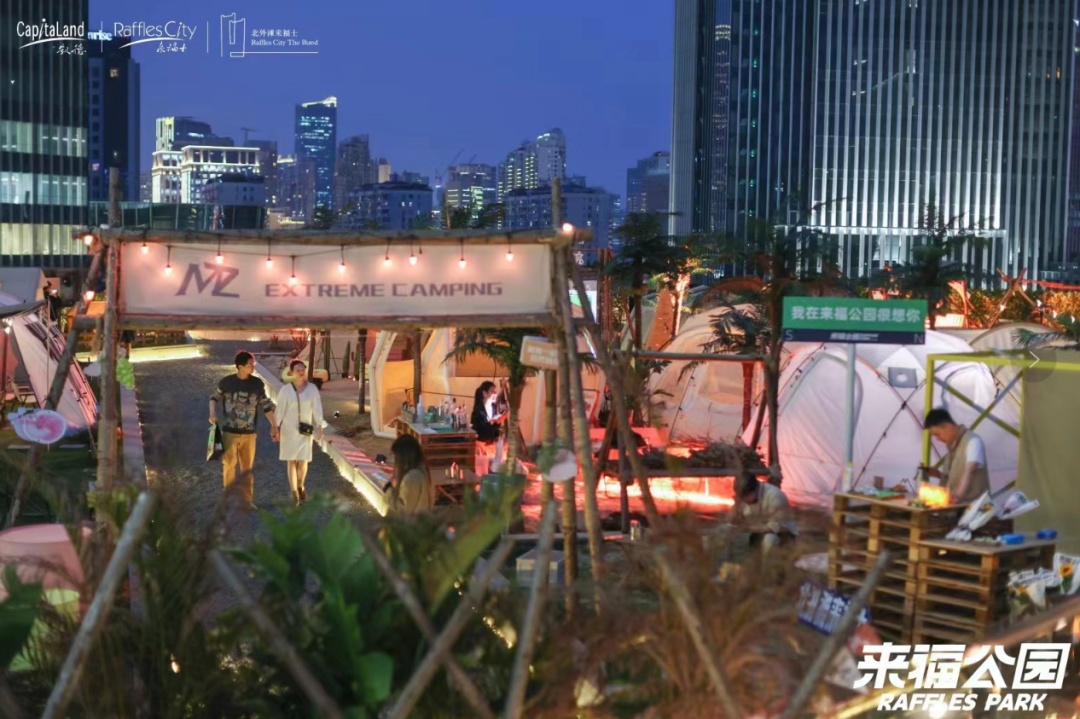 北外滩来福士持续利用顶楼露台得天独厚的环境,引进各类潮流项目及品牌,如体育综合品牌“引力新星”及城市露营地“MZ极致露营”等,创立体育+露营生活方式,营造户外健康运动和潮流体验相结合的氛围,打造玩法丰富的社交窗口。