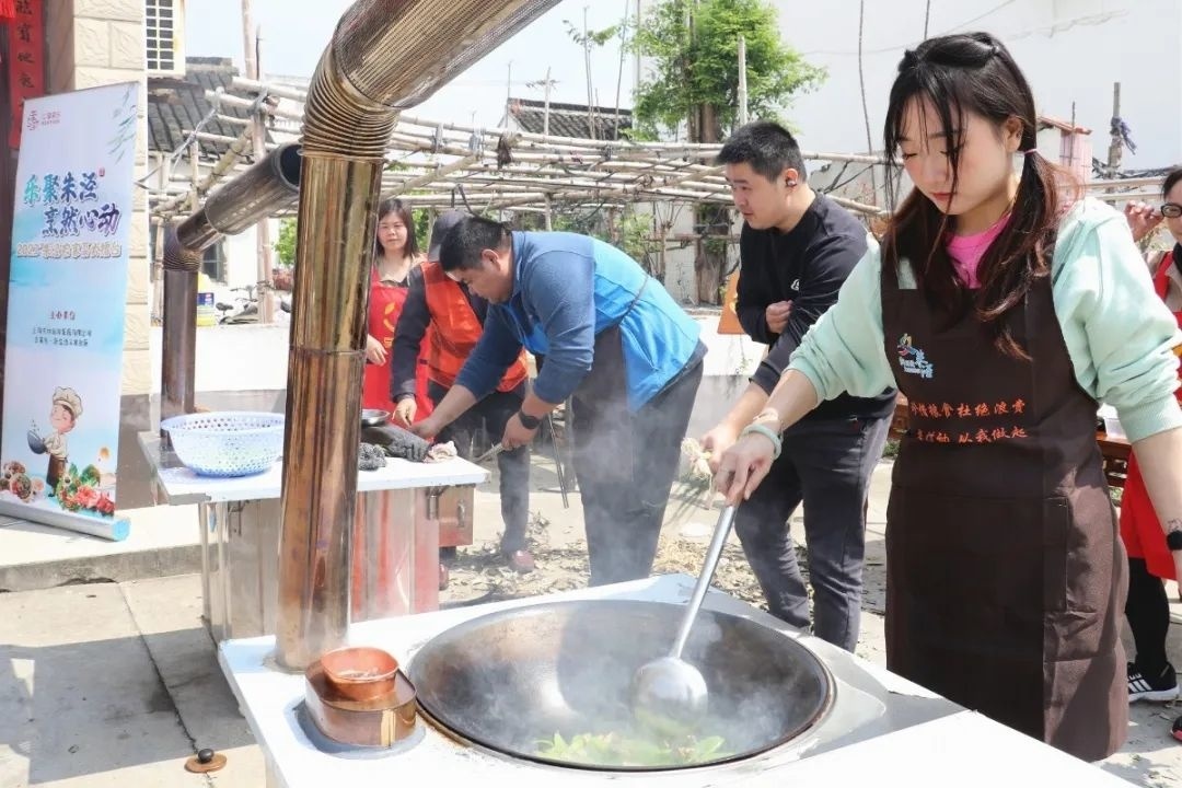 “土灶烧饭几十年没试过了,刚开始还有点手忙脚乱,慢慢就找到感觉了,很有意思,和老婆一边做菜,一边回忆‘小辰光’,很有感触。”近日,在朱泾镇,一场农家菜大擂台拉开了“五一”农文旅系列活动的序幕,12名市民分工合作,烧柴、配菜、烹炒……忙得不亦乐乎,参赛市民金崔云直言,土灶烧出的农家菜就是记忆里最地道的饭菜香。