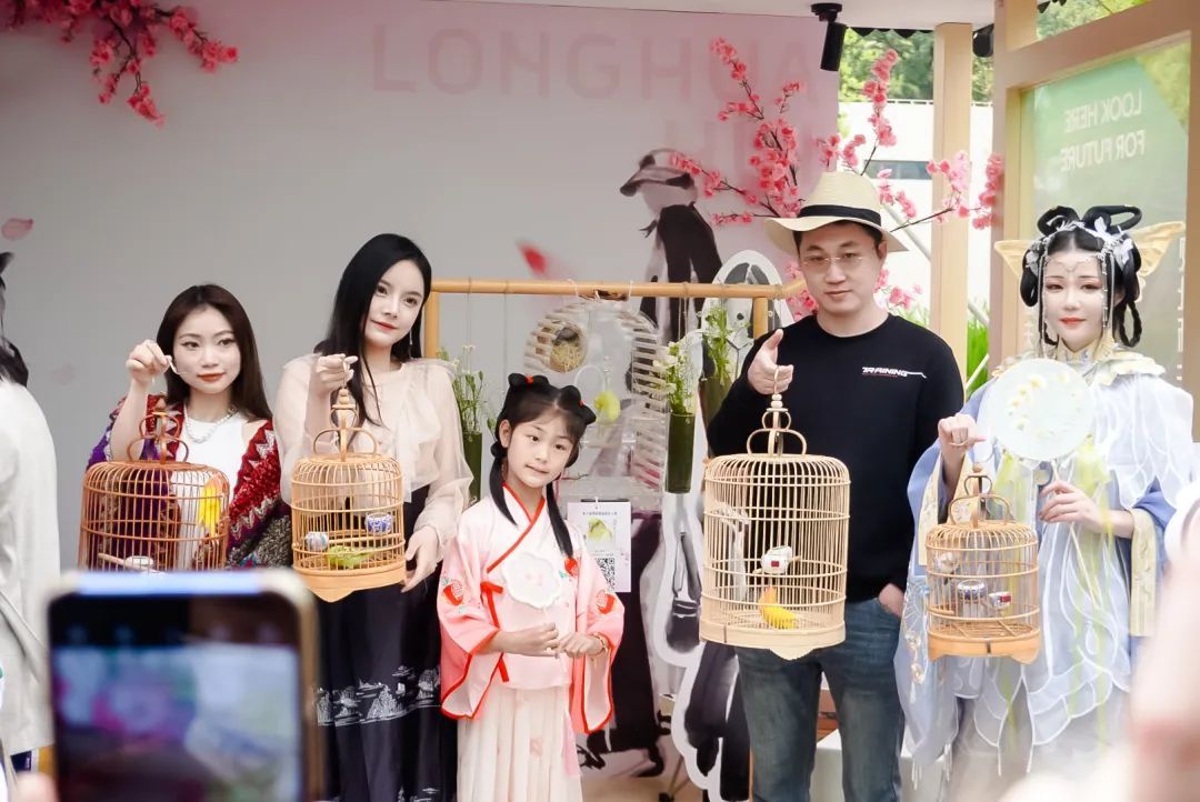 紧挨着寺院墙根,短短几十米的“小巷”被安排得满满当当:有青年茶饮品牌开吉茶馆专门为2023上海龙华庙会推出联名款限定茶饮套餐,其中,桃花春茶由经冷萃浸泡后的新鲜桃花与乌龙茶、锡兰红茶等不同茶叶融合打造而成,搭配桃花酥和白桃乌龙茶冻,于龙华庙会的烟火气与暖暖春风中,食出桃香,喝出惬意;有国潮品牌龙心带来寓意吉祥文化的潮流IP——BUFF兔(八福兔)手作体验,以活力缤纷又极具未来感的场景吸引市民游客纷纷前来打卡,现场陈列的NFT数字藏品及IP实体周边等,更带来从亘古到未来的中式潮流文化魅力;还有老字号品牌跨界创新的代表茅台冰淇淋携春夏新品入市,全球潮玩集合店楽时潮玩带来全国限量的桃花主题盲盒……现场,国风舞蹈、民俗糖画、非遗草编、汉服游戏Cosplay、民谣LIVE接续登台,上海龙华会借“妙会龙华”以商业之力传承地方文化根基,共同妙想徐汇龙华未来的文化与商业活力。