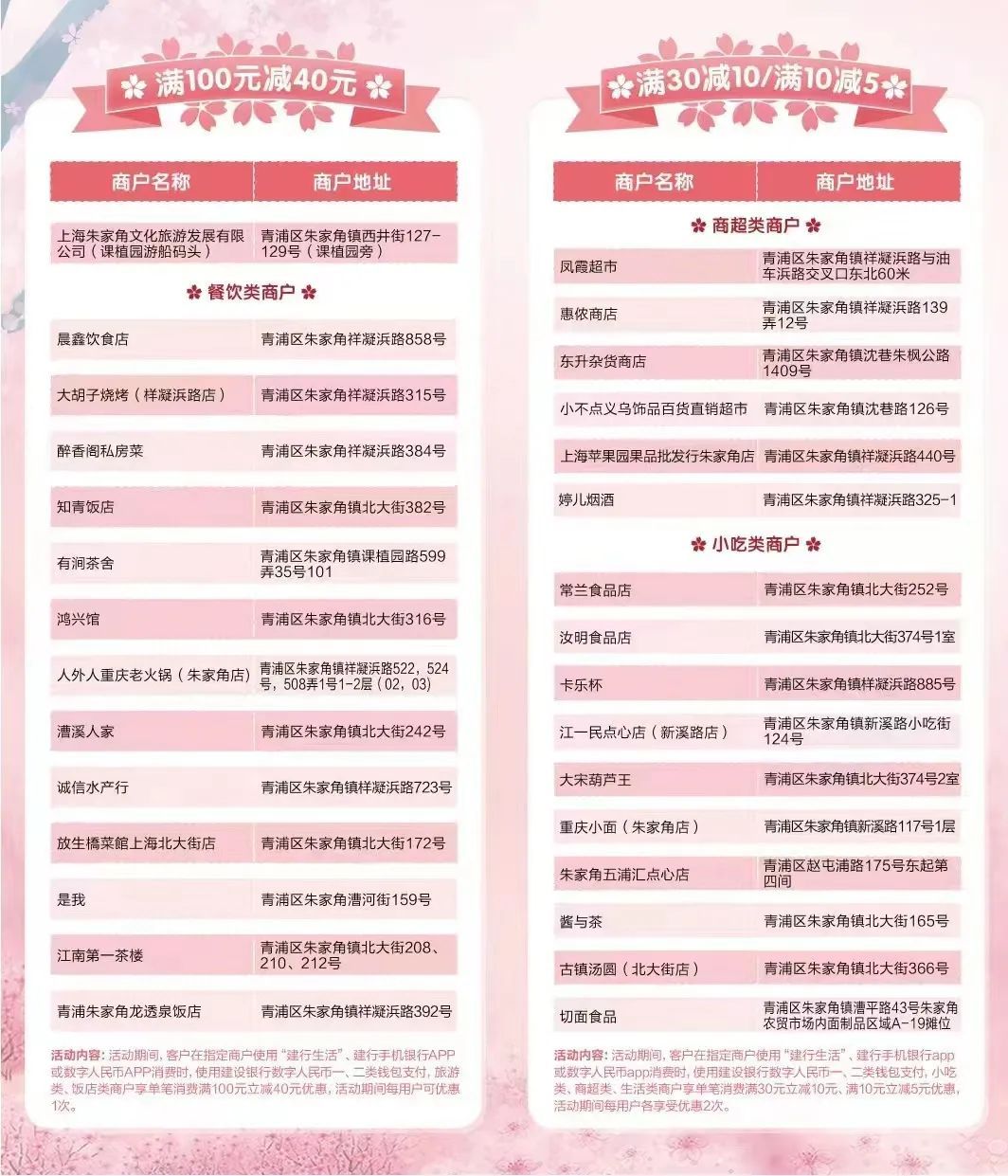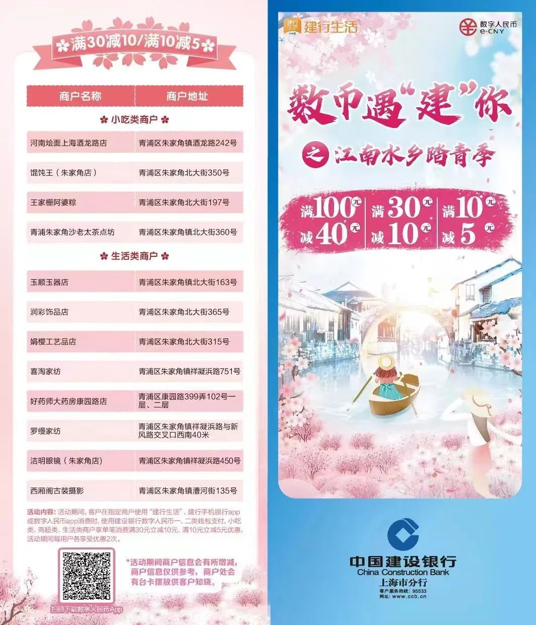 朱家角古镇内共有41家商户参与此次活动,涵盖了富有江南特色的小吃和餐饮,也有具有地方特色的手工艺品店,更有朱家角旅游公司的加入,旅游项目包含乘船游览和景点门票等,游客可以充分了解到古镇古色古香的历史背景和文化底蕴。