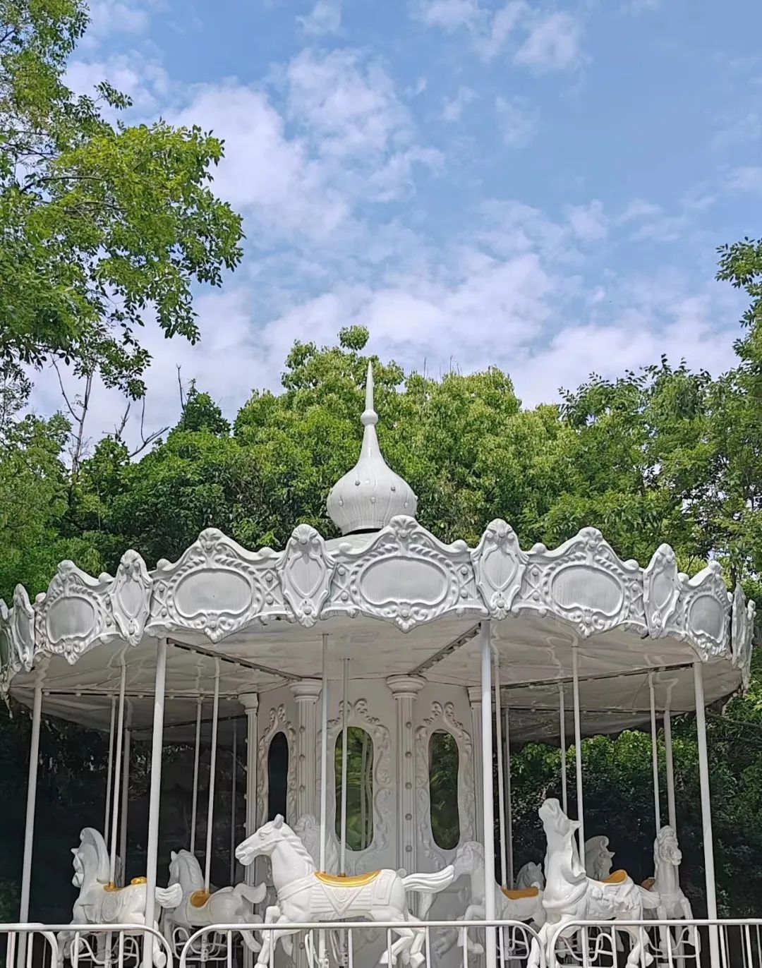入口处有座纯白梦幻的旋转木马,