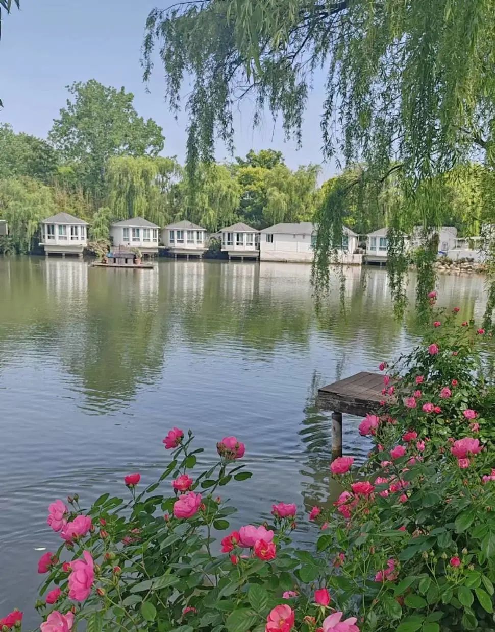 沿湖边次第开放,