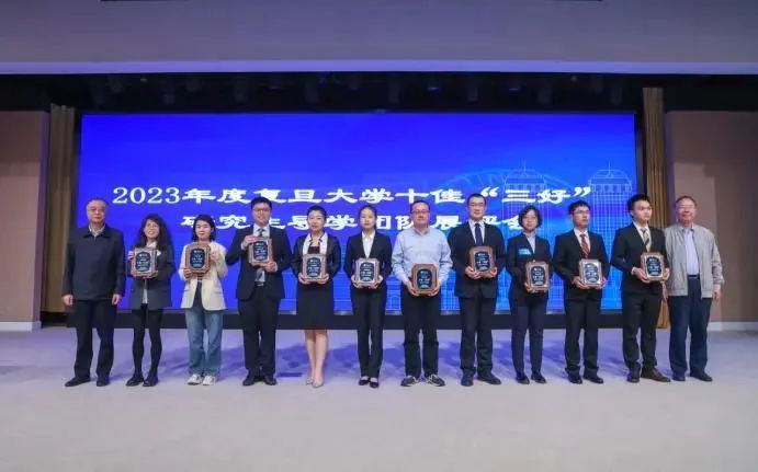 4月28日下午,在复旦大学十佳“三好”研究生导学团队展评会上,10支导学团队拟获得2023年度十佳“三好”研究生导学团队荣誉称号,获评团队同时获得复旦大学唐君远奖励基金。本次展评活动覆盖文社理医工不同学科,来自24个院系24支优秀的研究生导学团队申报参评。