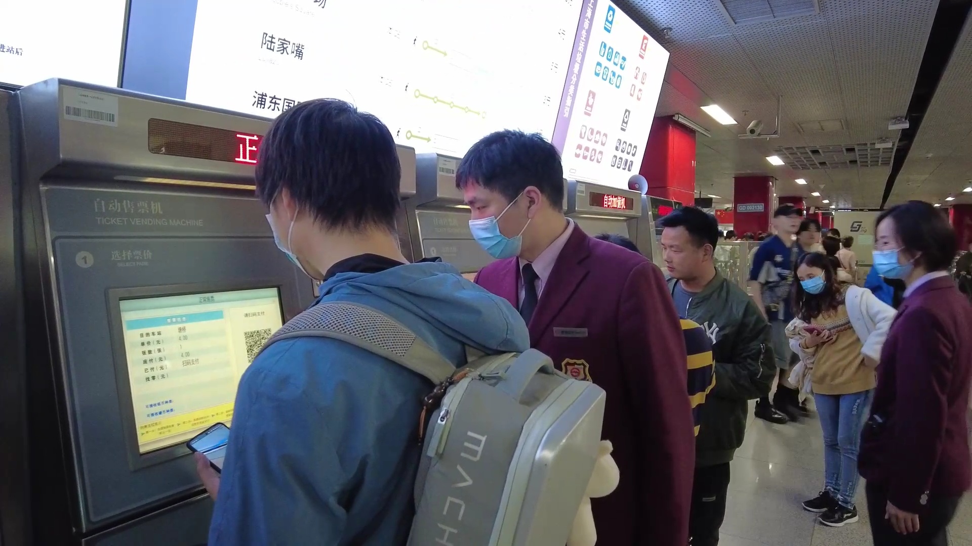 车站工作人员提醒,”五一“小长假期间客流较多,乘客在进站乘坐地铁前可以尽量采取APP扫码进站的方式,加快进站速度。