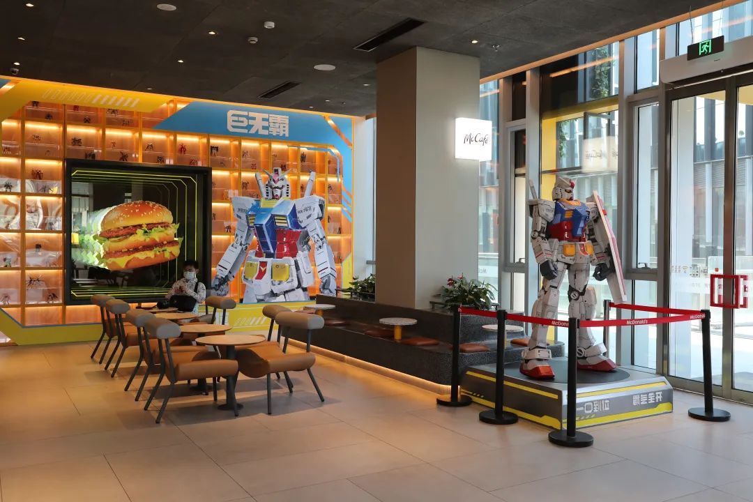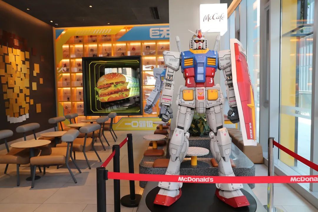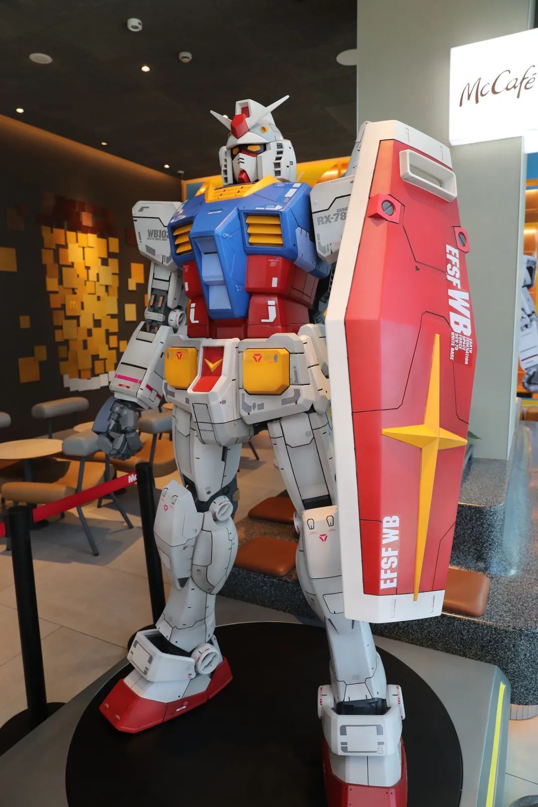 位于龙腾大道的麦当劳餐厅里,展示着经典元祖配色的RX-78-2高达立像。值得一提的是,展厅门外还首次展出为本次合作定制的巨无霸配色同款高达立像,只在主题旗舰餐厅才有。高达动画的粉丝注意了,千万别错过。