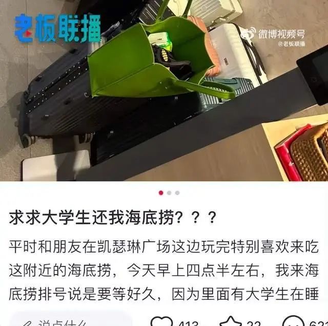 记者注意到,近期,在社交媒体上关于凌晨在海底捞过夜的讨论帖子并不少,有网友还发布了海底捞留宿攻略。而在五一假期期间,有不少消费者发帖称,海底捞门店堆放了数个行李箱,不少大学生在海底捞留宿,凌晨到店就餐还要等位。