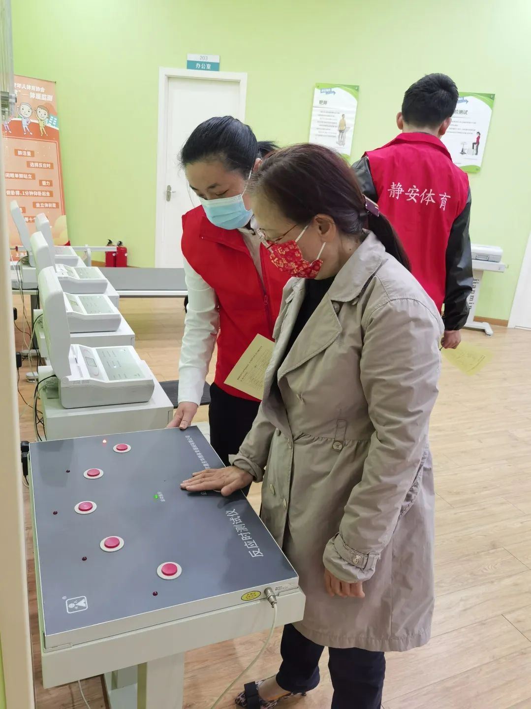 近年来,区体育局落实市、区、街镇三级市民体质监测网络架构,依托体质测试站,将体质监测送进楼宇、园区、社区、学校,为社区居民和职工提供体质检测服务。