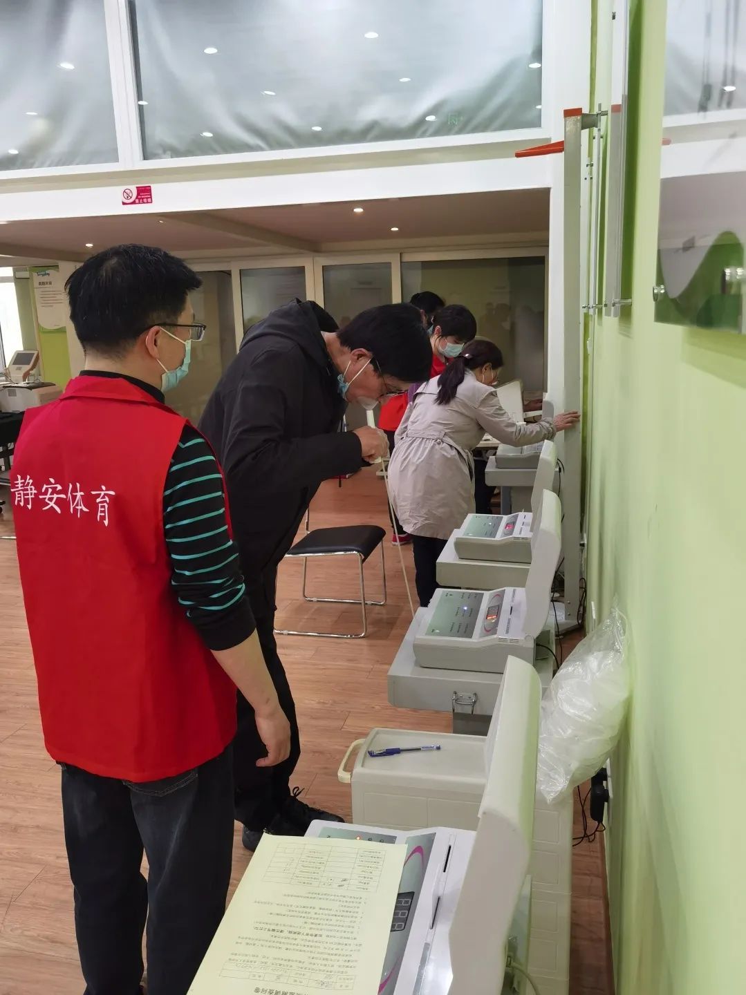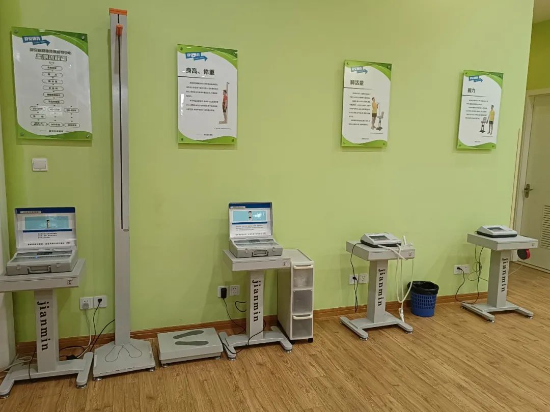 静安区体质测试站内有配有身体成份测试仪(骨骼肌、脂肪、水份含量)、超声成像骨密度仪、心肺功能测试仪、力量测试仪、远红外综合身体素质测试仪以及相关配套软件。