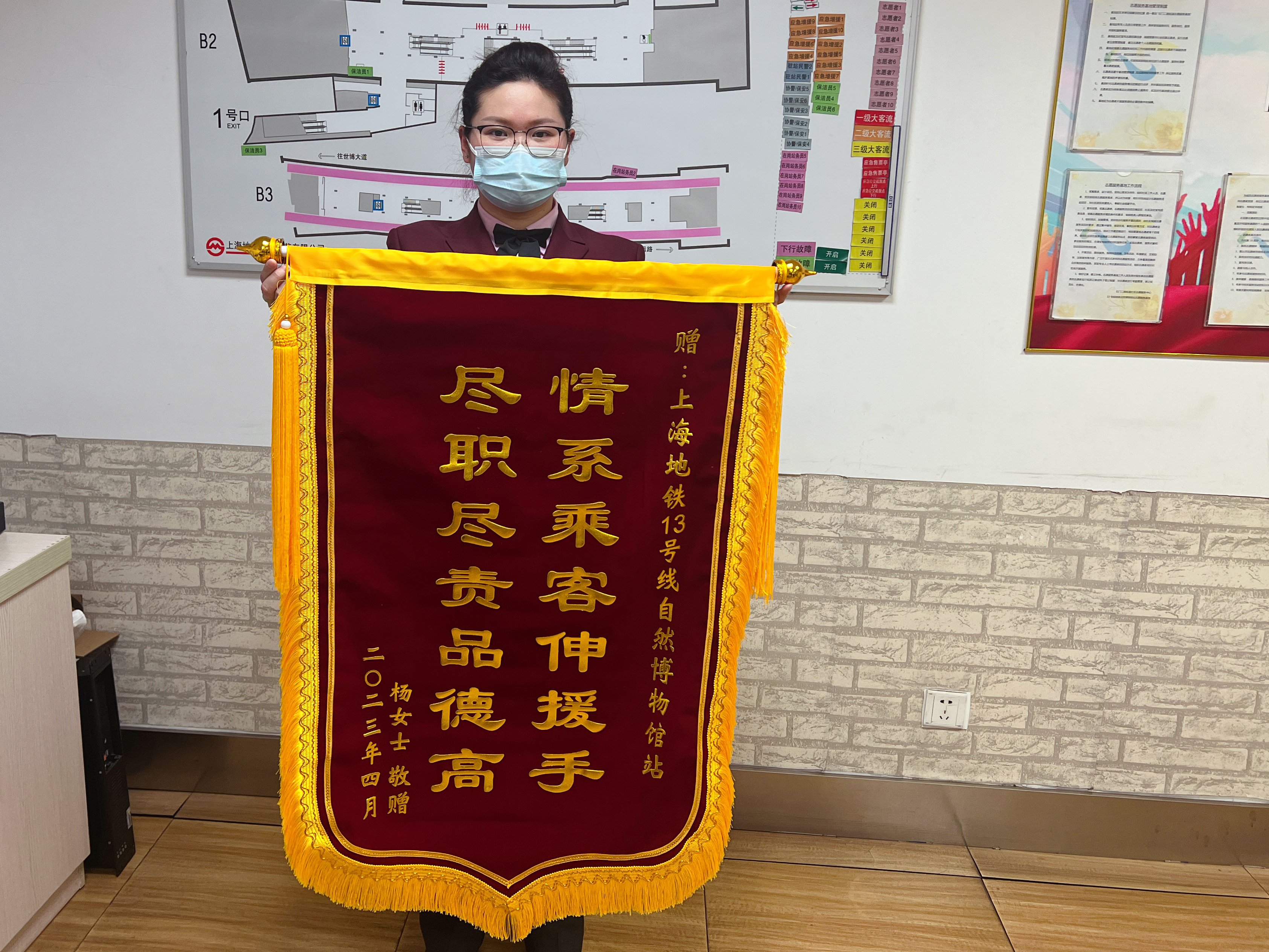 4月23日,回到家中的杨女士随即收到了极速快递送来的书包。她激动地制作了锦旗再快递给陆站长,感谢车站员工急乘客所急,提供人性化服务,这是她对上海这座城市的温暖回忆。