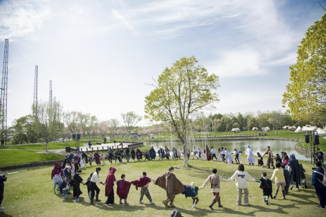 异星营地里正上演着现实版的《权力的游戏》,据介绍,这是上海首家与露营结合的沉浸式剧本杀,在唯美光影、戏剧演绎、大型人偶的陪伴下,玩家可以在部落感十足的复古场景中身临其境地与专业演员同台飙戏,零距离沉浸式互动,让不少游客大呼过瘾。家住浦东新区的寇女士在网上看到消息后就带着孩子来了,“这里有露营,有烧烤,那边还有叫花鸡,挺香的,比我之前去的烧烤的地方要好。”寇女士笑着说,“我们还参加了这个剧本杀,小孩挺喜欢的,我也第一次参加这种沉浸式的。”