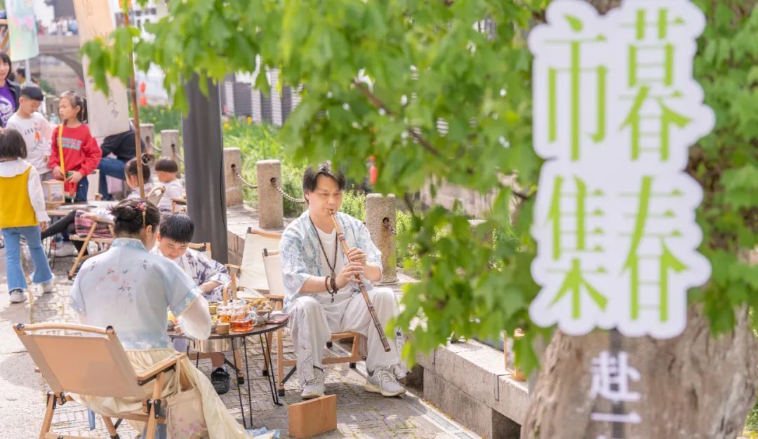 在河边品一口春茶,赏“非遗”作品……州桥老街于4月14日推出的塔南小集·暮春市集,将围炉煮茶作为分支活动,让游客不仅能“走马观花”逛市集,还能停下脚步小歇片刻,疗愈身心。“很惬意,有闹中取静的感觉。”市民王先生表示。