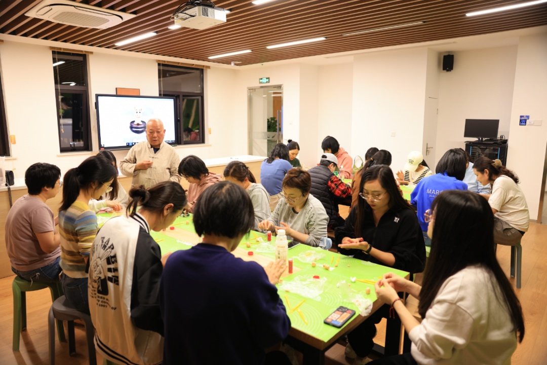 隔壁的面塑班同样欢乐。面塑是以面粉为主料,调成不同色彩,用手与简单的工具,塑造出各种栩栩如生的形象。徐汇区非遗面塑传承人李国庆将12生肖融合进难易渐进的课程教学,让非遗项目变得轻松、易上手。学员们也并非都是手工达人,却乐在其中。