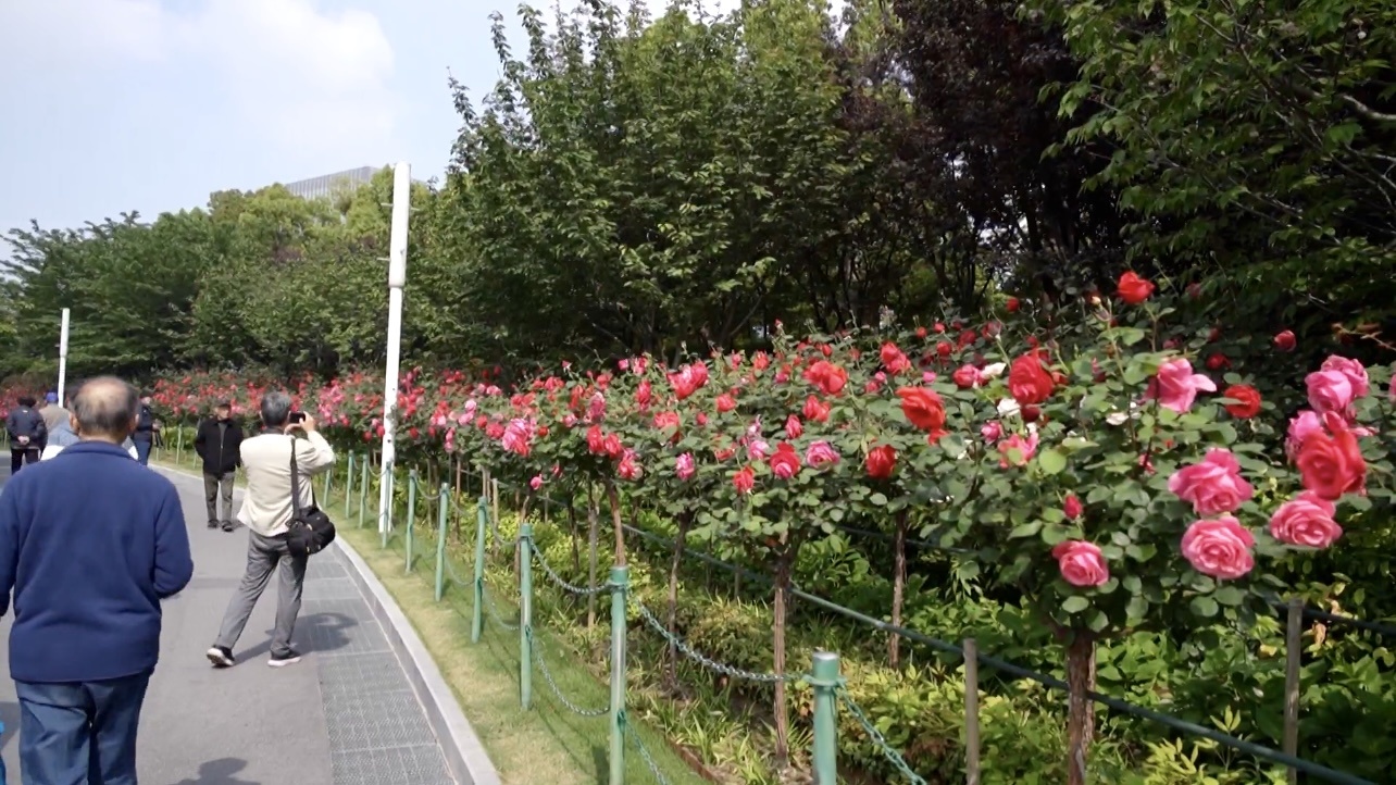 “现在的这个季节,月季花开得非常漂亮。其实不光是月季花,包括之前的郁金香、油菜花,是真的给我们生活增添非常多的色彩。”市民骆女士告诉记者。