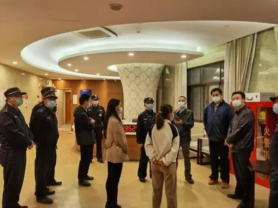 检查组对汉庭酒店进行检查,消防民警进行消防服规范穿着的现场教学,在检查中发现酒店微消站器材不符合要求、消防管理制度落实不到位等问题,要求酒店负责人严格落实整改。