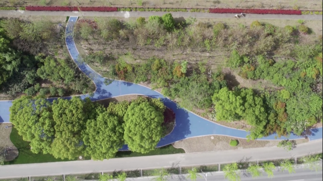 最近,全长约1公里的元江路绿道投入使用,这条绿道东至都会路、西至沪闵公路。从空中俯瞰,蓝色的路面犹如一条飘逸靓丽的蓝丝带。其采用的彩色透水混凝土,除了具有透水性,下雨时能较快消除道路的积水,还具备了散热快、吸附扬尘等优点。