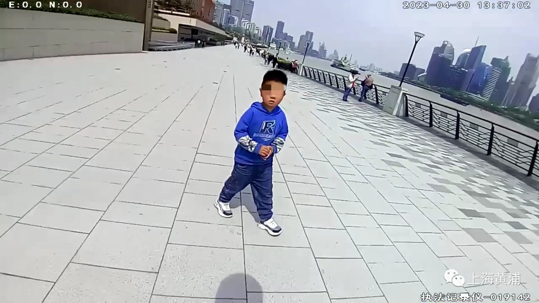 4月30日中午,黄浦分局外滩治安派出所接到一位家长求助称,自己六岁大的孩子在外滩十六铺码头附近走失,家长在电话里已语无伦次,相当担忧。接报后,民警根据工作预案,将小孩的衣着特征通报给执勤民警与保安力量加强找寻发现,并同步查阅公共视频寻找小孩踪迹。