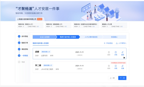 市民刘先生在一家高新科技企业任职,今年刚从江苏来到杨浦发展的他如今已成功申请入住了人才公寓。“本以为得花不少时间,没想到现在只需把电子材料给到公司人事,公司就可以完成全流程代办。杨浦的人才服务很人性化,很到位。”