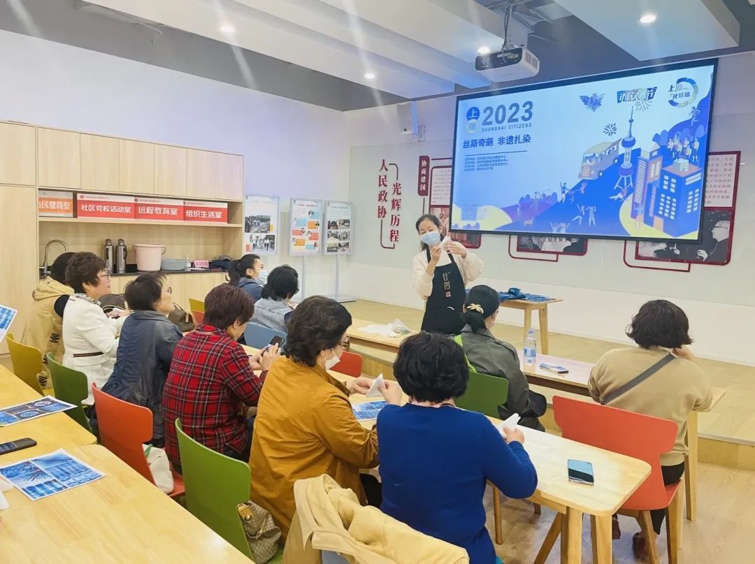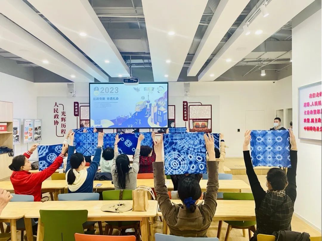 扎染古称扎缬、绞缬或染缬,是我国民间传统且独特的染色工艺,它在我国已有数千年的历史,是我国劳动人民辛勤的智慧结晶。“丝路奇葩 非遗扎染”主题活动是田林街道社区党群服务中心的公共文化配送项目之一,旨在将更多优秀非遗文化艺术资源转化为社会美育资源,体验古法扎染的乐趣,丰富市民精神文化生活。